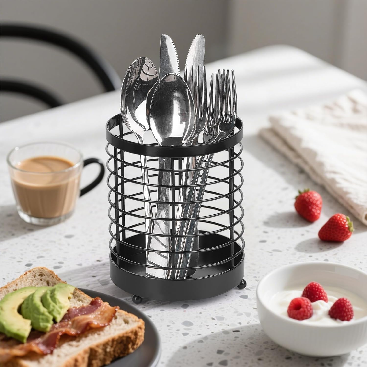 IWNTWY stainless steel kitchen counter utensil holder can keeping the kitchen countertop clean and tidy, classic black color can be perfectly integrated into various kitchen decoration styles. It is a thoughtful gift for friends to move into a new home.