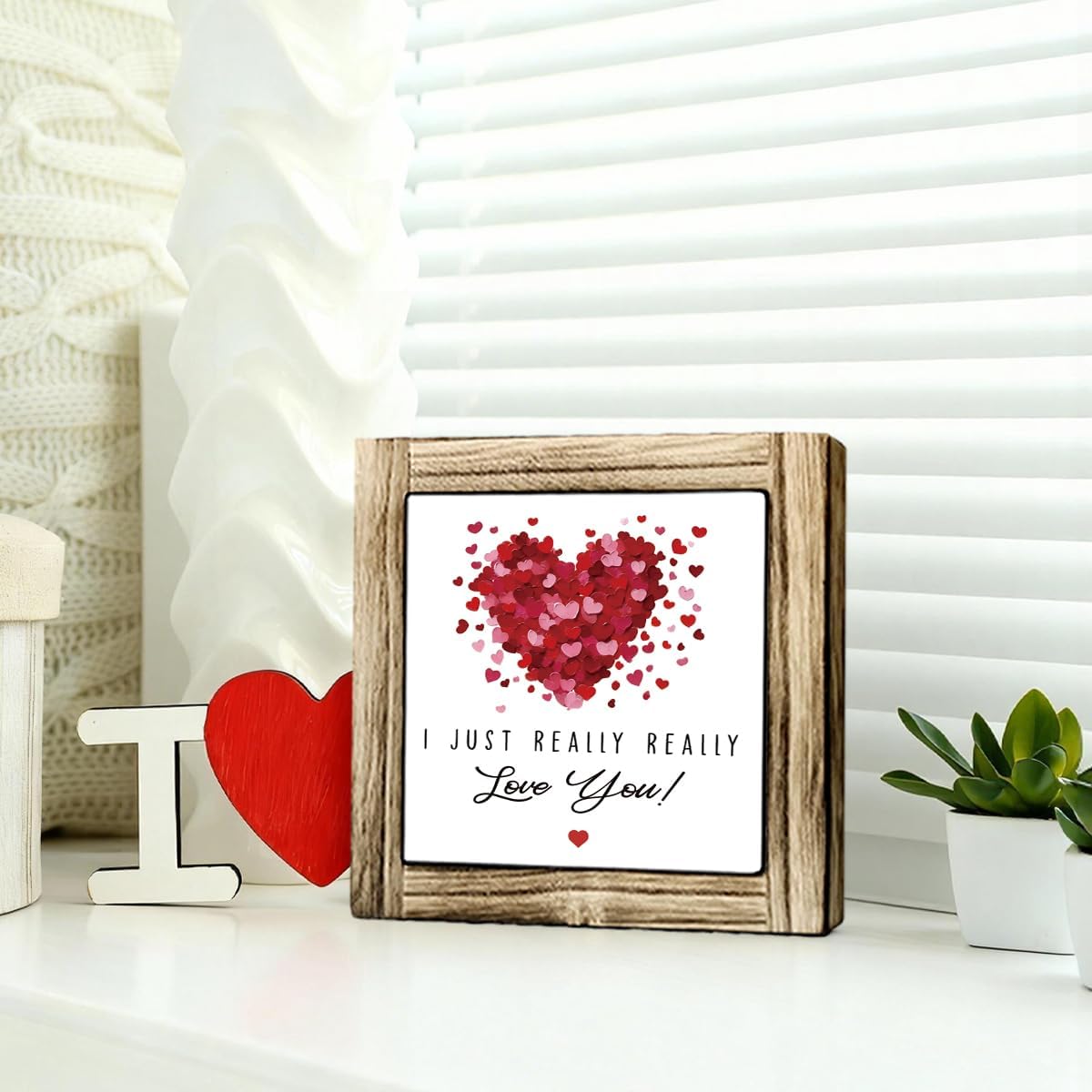 Valentine’s day Decors Gifts, Box Wood Plaques Desk Décor, Elegant Home Decor, Farmhouse Decor Set (004)