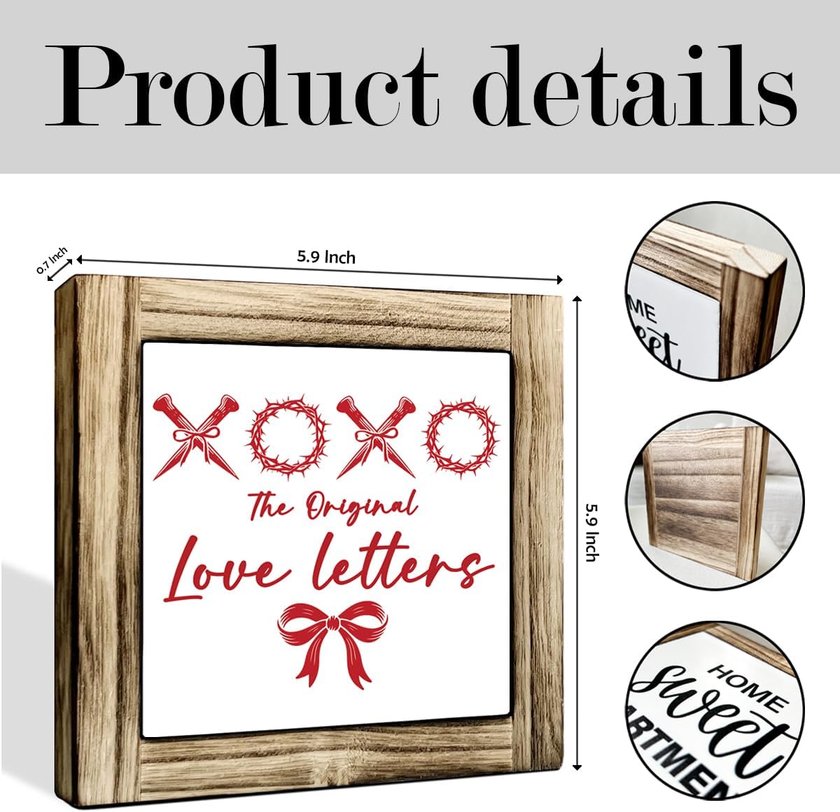 Dimensions: 5.9×5.9×0.7inch; (15x15x2cm) Material: made of quality pine wood; It can be given to family, friends, colleagues, children, etc.