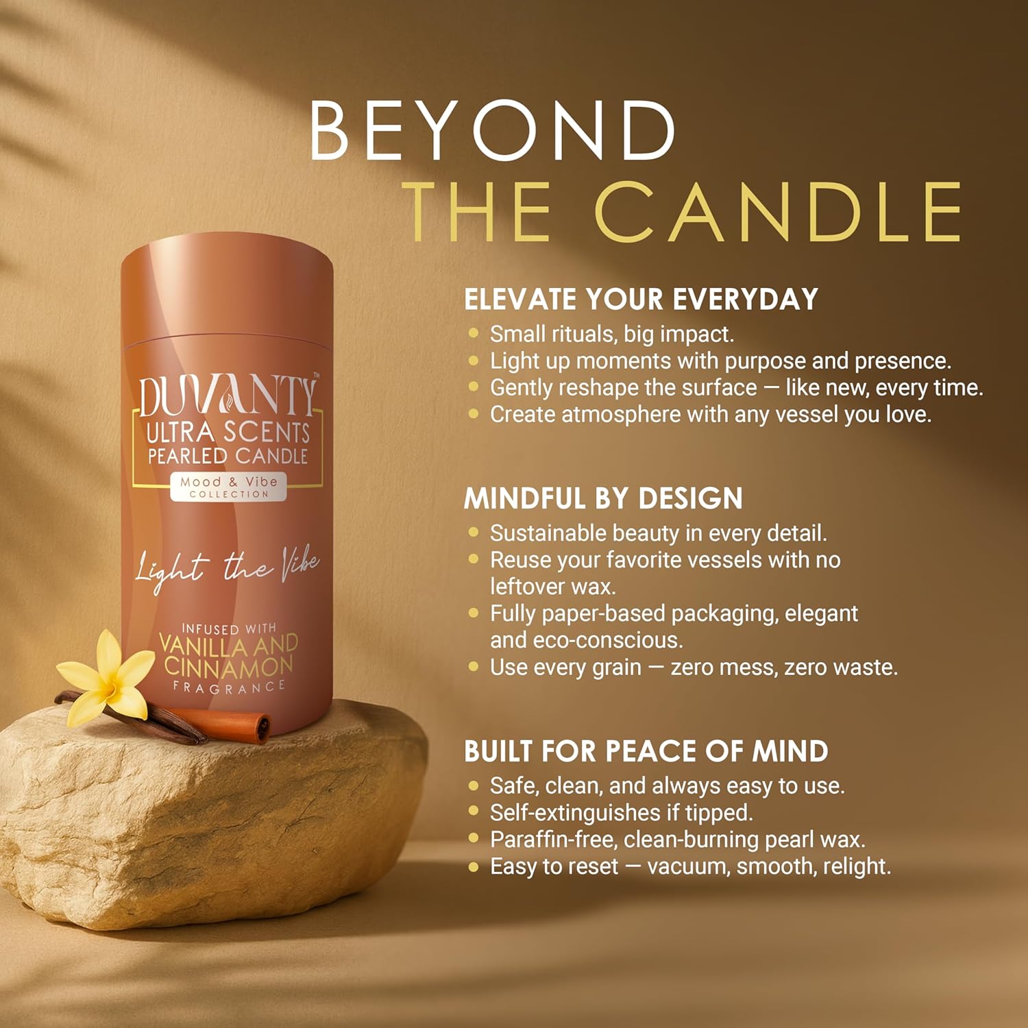 SCENT WITH PURPOSE — transform your space with candle sand that feels alive. Designed to bring beauty, rhythm and sensory balance to any setting, Duvanty’s pearled candle sand and wicks turn every lighting moment into a simple ritual of presence and expression.