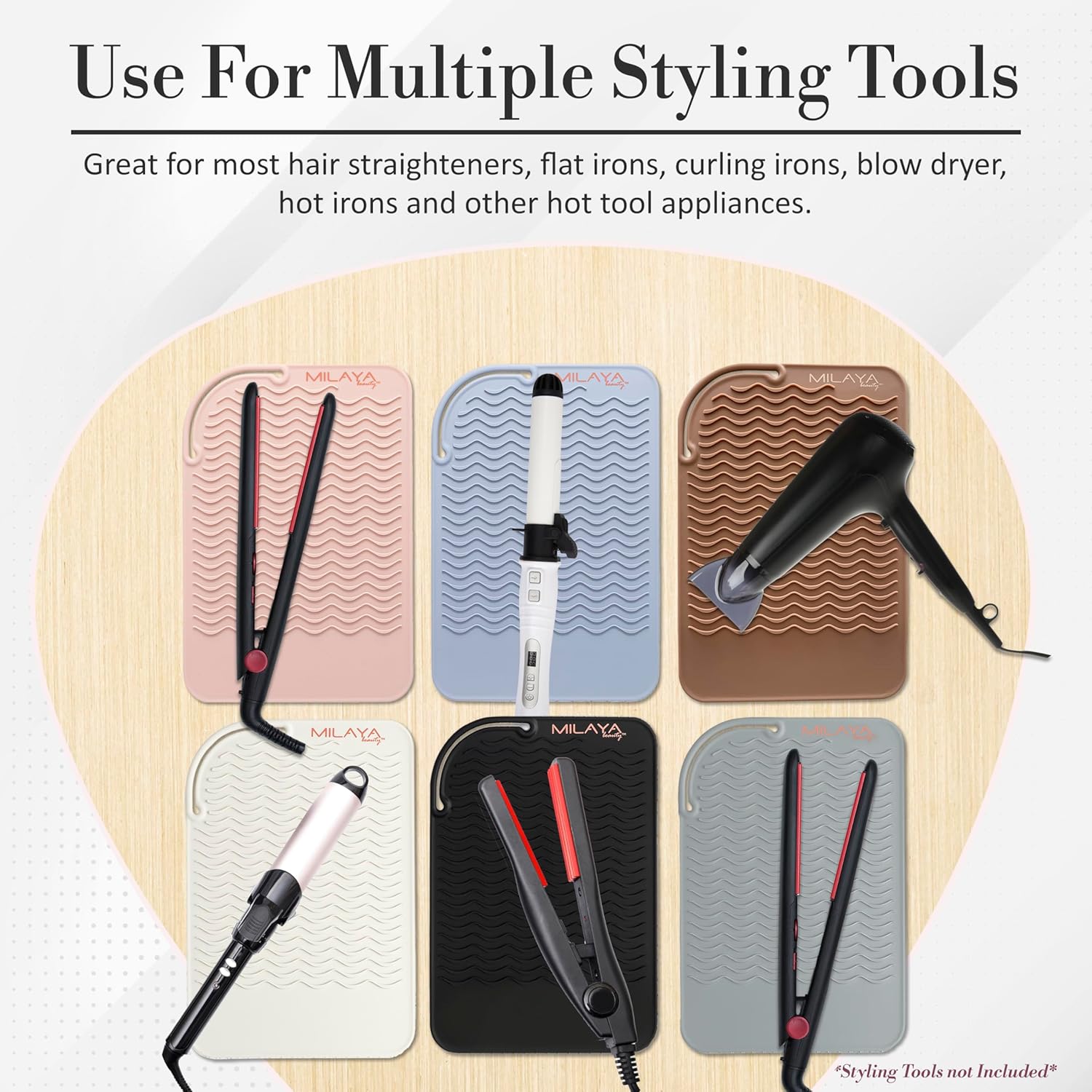 Large Size & Durability: This silicone heat resistant mat measures a generous 7.5” × 11”, giving space for multiple styling tools. The double-sided, non-slip texture keeps tools steady—an essential heat proof mat for countertops or salon stations.