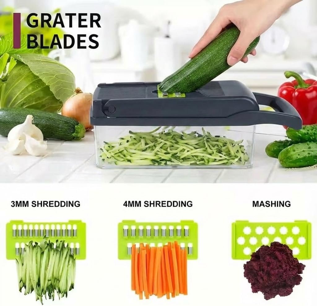 ✅ Meet the Only Kitchen Tool You Need If chopping vegetables feels like the slowest part of cooking, this 16-in-1 Multifunctional Vegetable Chopper will change your kitchen life instantly. Designed to replace knives, boards, slicers, graters, and even bulky processors — this single compact tool does it all in seconds, with zero mess and zero effort. Whether you’re prepping veggies for a salad, slicing fruit for smoothies, dicing onions without tears, or shredding cheese for pasta — this chopper gives you perfect, consistent results every time. 🔥 Why This 16-in-1 Chopper Is a Game-Changer ✔️ 16 Functions in One Tool Includes 16 premium attachments for: Fine chopping Large dicing Thin slicing Thick slicing Julienne cuts Spiralizing Ribbon cuts Grating (fine & coarse) Mincing garlic/ginger Cheese shredding Egg separator Lemon squeezer attachment Food holder + hand protector Storage container with lid Drain basket Safety cleaning tools This is a full all-in-one prep station for your kitchen. ⭐ Key Features That Customers Love 🔪 Razor-Sharp Stainless Steel Blades 16 interchangeable blades made from rust-resistant 420 stainless steel ensure fast, smooth cutting — even through tough veggies like potatoes and carrots. 🍱 Built-In 1.2L Food Storage Container Chopped veggies drop directly into the container — no more countertop mess. Perfect for meal prep! 🧼 Easy to Clean & Assemble The chopper disassembles quickly. Comes with a blade cleaning brush so you can wash without cutting your hands. 🛡️ Safe, Stable & Anti-Slip Non-slip base + hand-guard protector keeps everything secure while you chop. 🕒 Saves Up to 80% of Prep Time Chop an entire salad’s worth of vegetables in under 30 seconds. 🍽️ Perfect For: Meal prep lovers Busy professionals Students & small kitchens Parents cooking daily Fitness diets (salads, bowls, veggies) Anyone who hates chopping with knives 💡 Why Choose a 16-in-1 Over a 12-in-1? Because you’re not just getting more blades — you’re getting more functions, better versatility, and the ability to handle any recipe without needing extra tools. More options → more creativity → faster cooking → cleaner kitchen. 🛒 Bottom Line The 16-in-1 Multifunctional Vegetable Chopper is your complete kitchen companion. Faster cooking, less mess, perfect cuts, every time — whether you’re a home cook or a meal-prep professional. This is the tool that turns everyday cooking into effortless cooking.