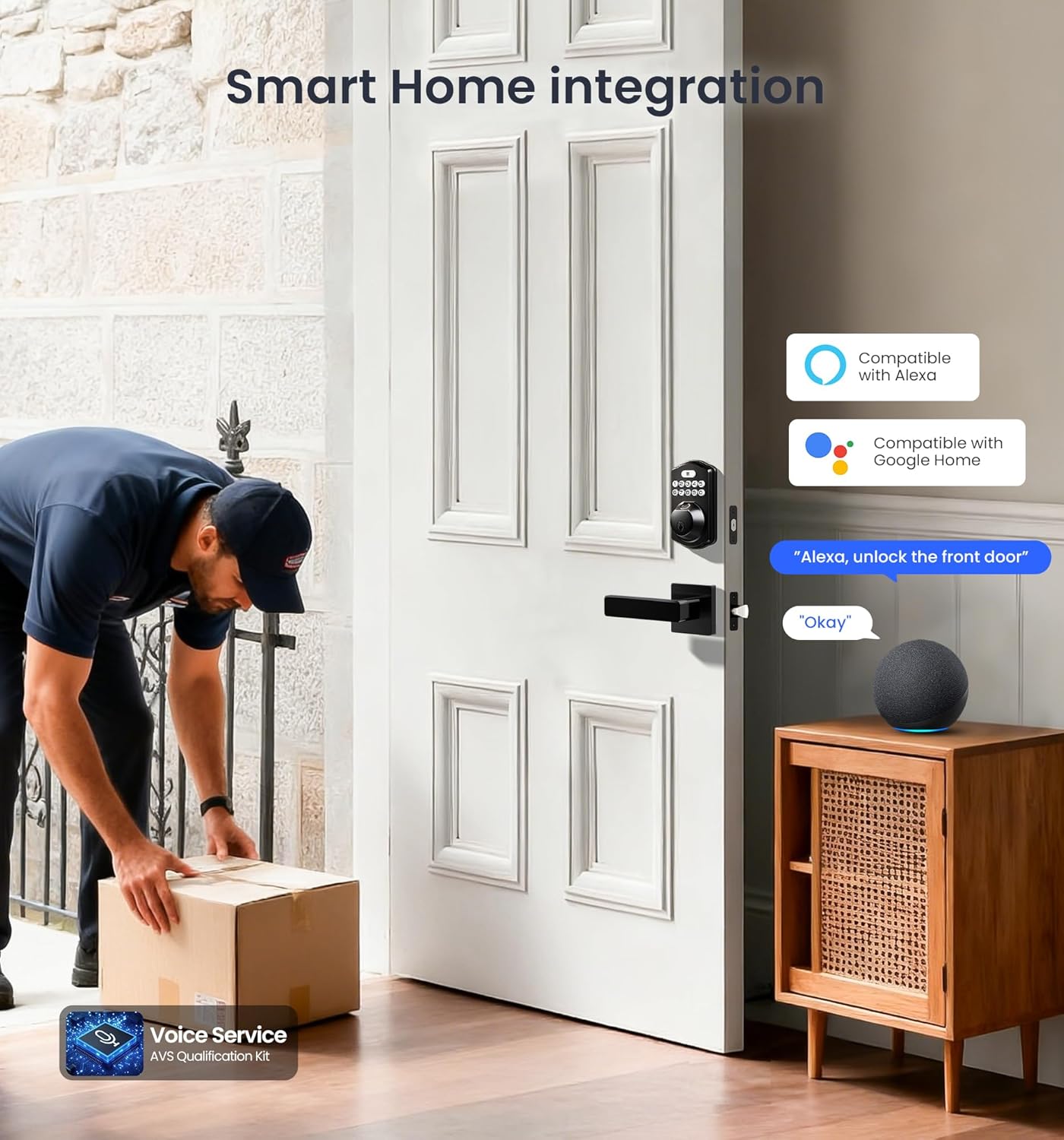 6 Smart Access Methods: This keyless door lock with Handle offers 6 ways to lock and unlock— App, Fingerprint, PIN Code, Voice Control, Auto-Lock, and Physical Key—delivering flexible, secure control