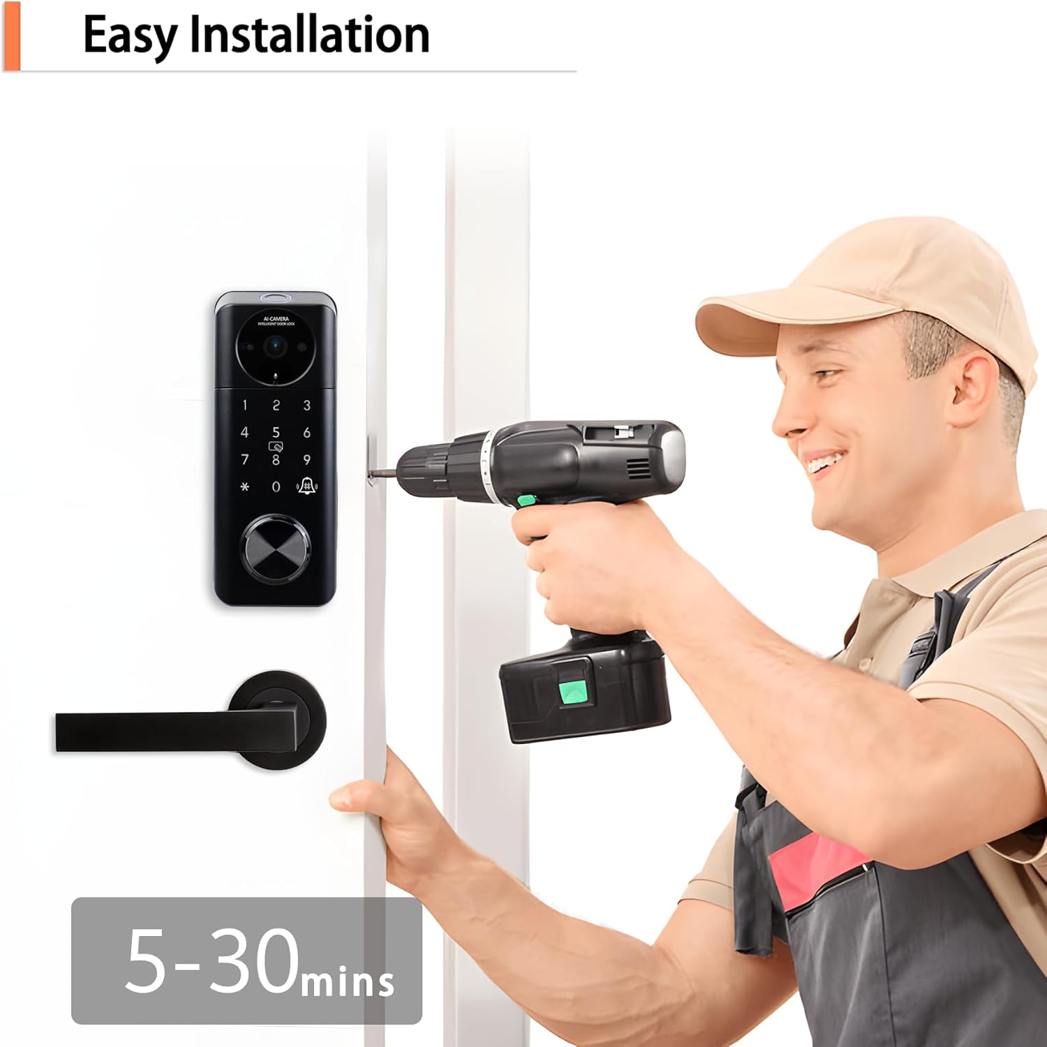 【Easy Installation】 Designed for DIY setup, compatible with US standard doors this smart door lock with camera installs in under 30 minutes with labeled hardware and instructions