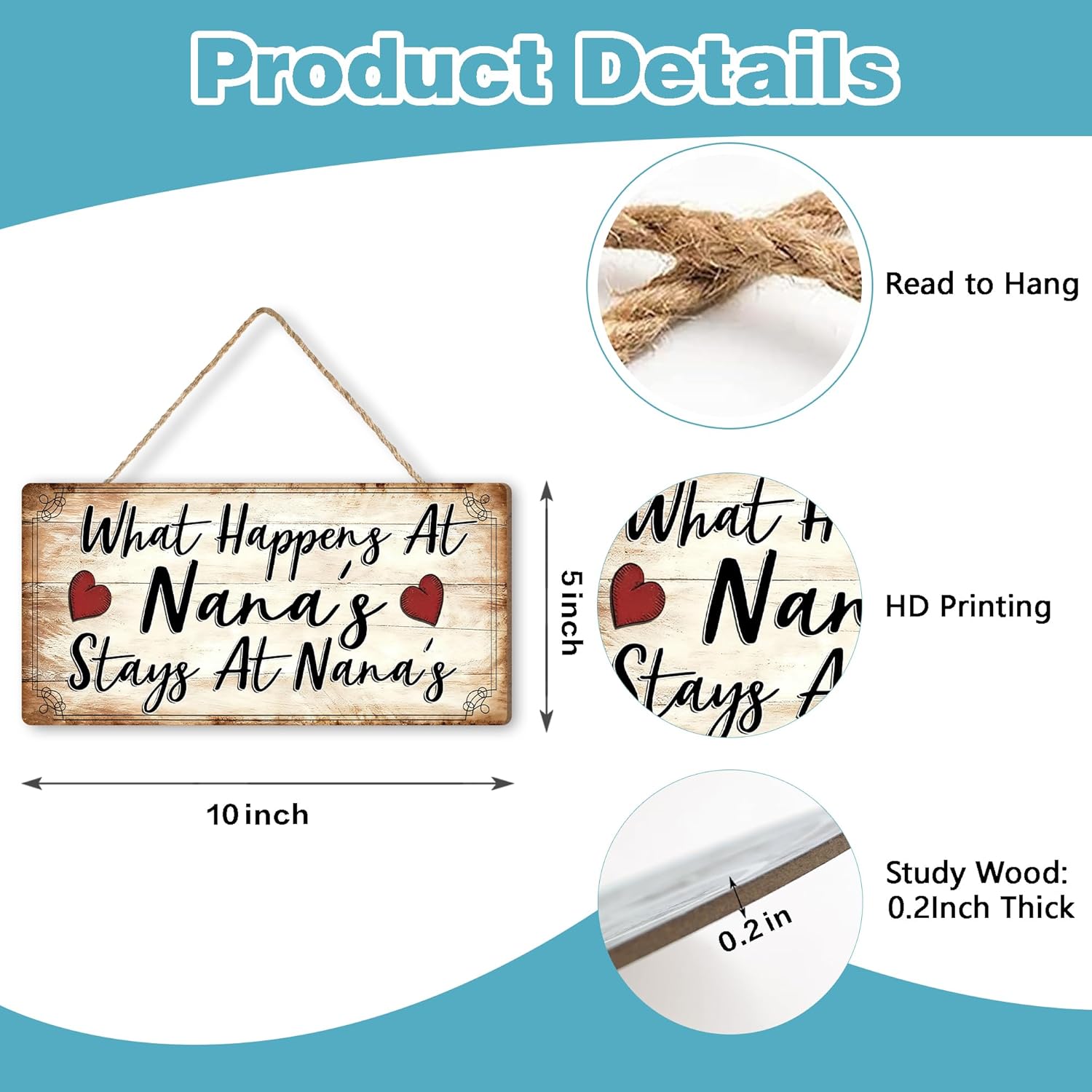 Vintage What Happens at Nana’s Wall Decor Wooden Signs Rustic Hanging Wall Art Sign Family Hanging Home Décor 5x10Inch