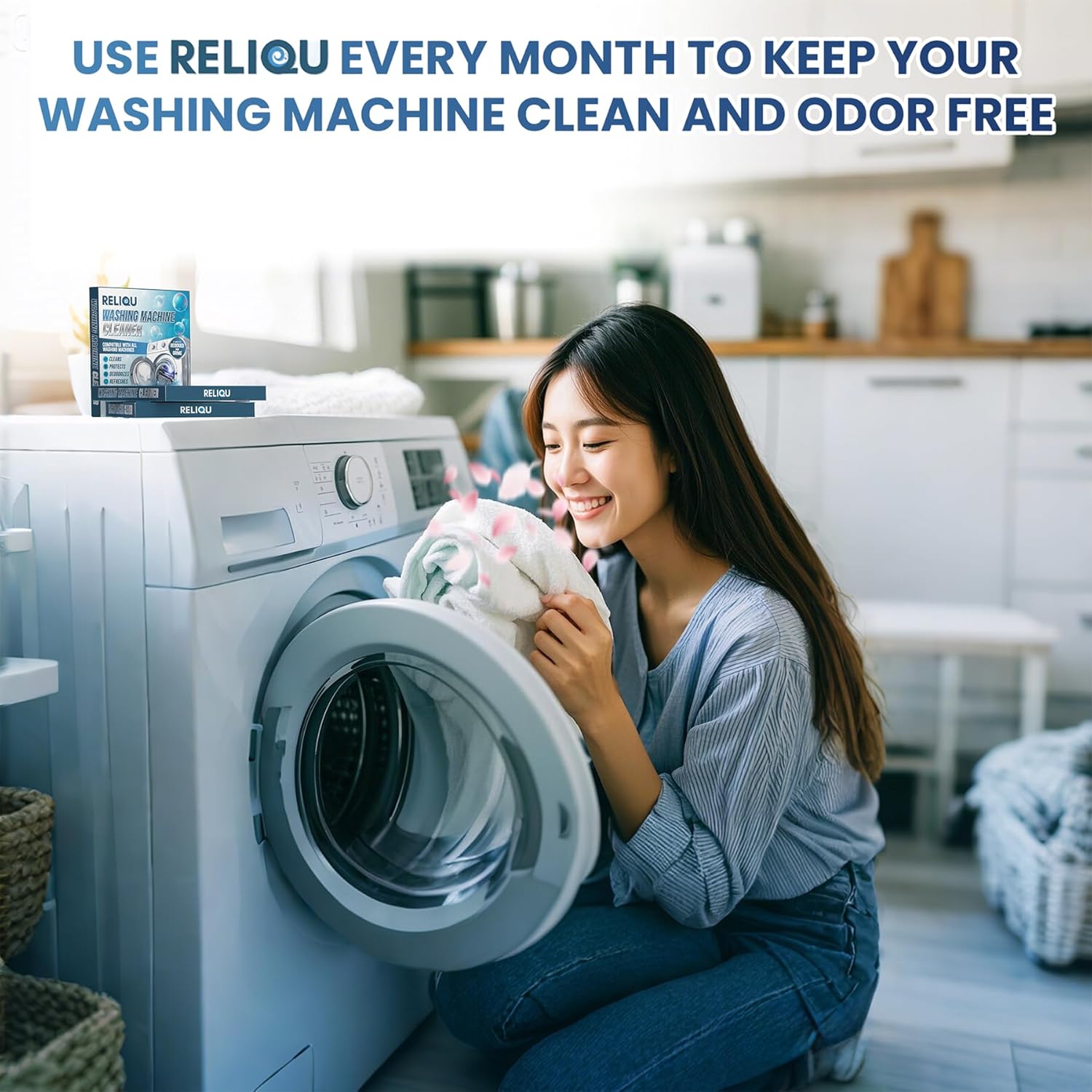 POWERFUL WASHER CLEANER: Experience the ultimate clean laundry with our Reliqu’s washing machine cleaner tablets. These washing machine cleaning supplies are designed to tackle the toughest stains and odors, leaving your machine fresh and your clothes spotless.