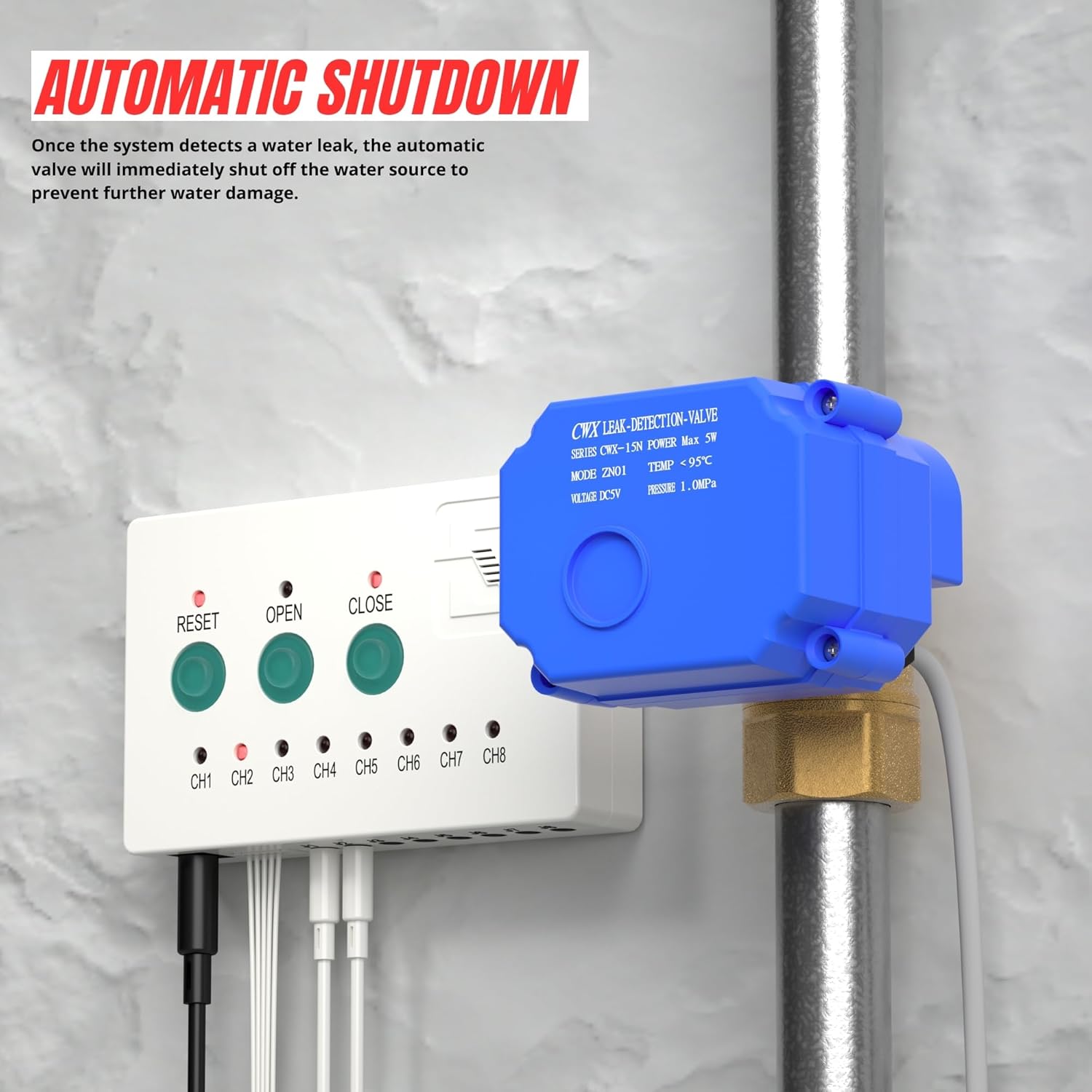 Automatic shut-off valve when the sensor detects any leak and the controller sounds alarm