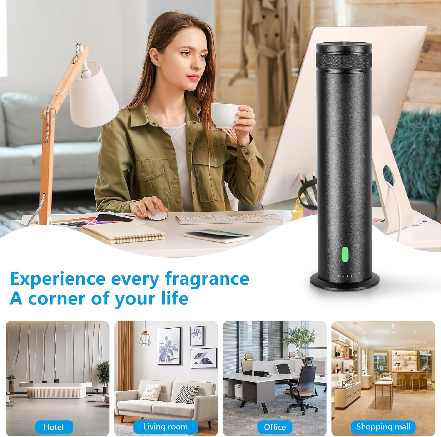 【Modern Aesthetic for Any Space】Sleek 11.20 black design complements both home diffuser setups and commercial environments; Compact aroma diffuser blends discreetly with room décor.