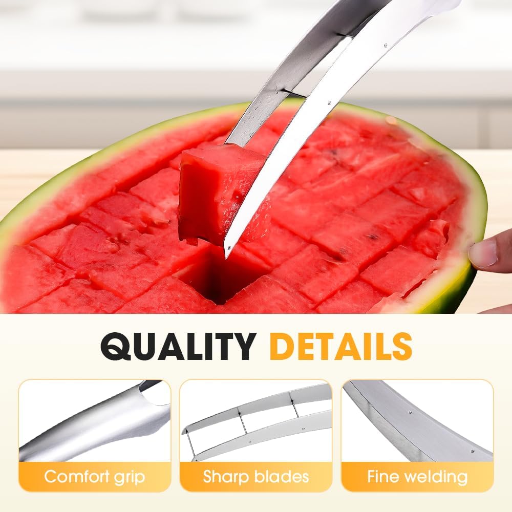 Easy to Use: The method of use is very simple, hook the handle with your index finger and use the power of your index finger to easily cut the watermelon without too many tedious steps. At the same time, our watermelon slicer is easy to use and clean.