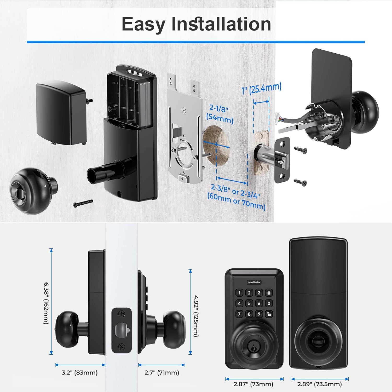 Share Access with Guests: This keyless door knob with keypad supports up to 50 access codes for keyless entry, use the app to share permanent, scheduled, recurring or one-time access codes with family and guests. Ideal for house, Airbnb, apartment, office, and hotel.