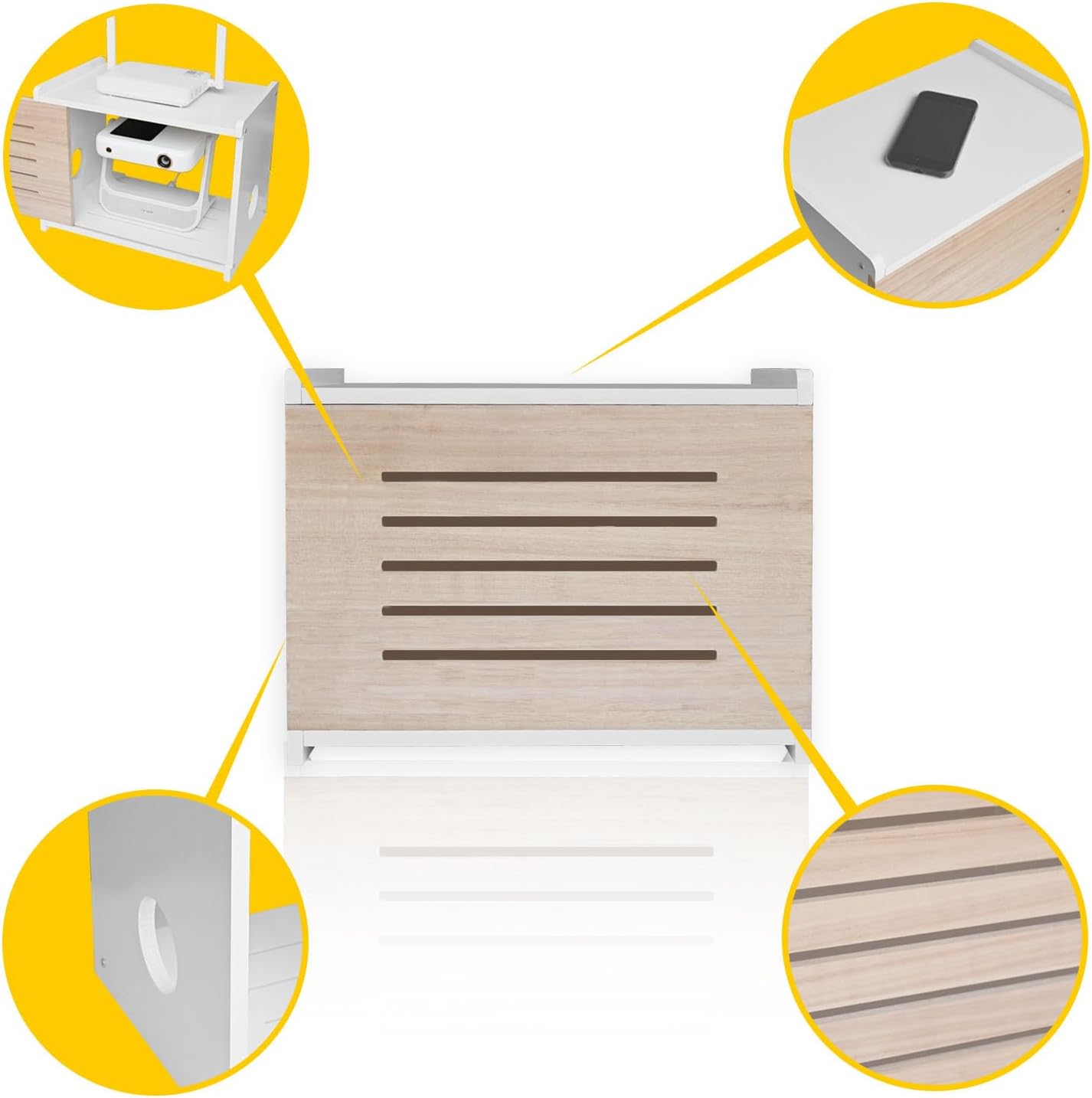 SPACIOUS INTERIOR — Generous dimensions (15.3″W x 9.8″H x 10.2″D) provide ample room to store routers, projectors, modems, and bulky power adapters. Ideal for users with multiple devices, eliminating cramped setups.