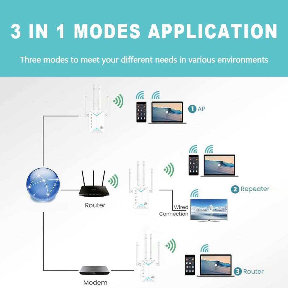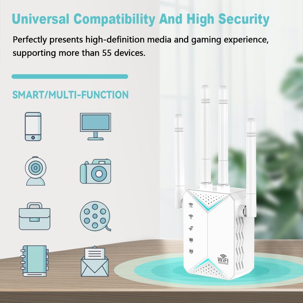 【High-Speed Performance】With speeds of up to 1200Mbps and support for dual-band (2.4G and 5.0G) frequencies, this WiFi booster delivers fast and reliable internet. Whether you’re streaming HD videos, gaming, or downloading large files, it ensures a smooth and lag-free experience for multiple devices at once.
