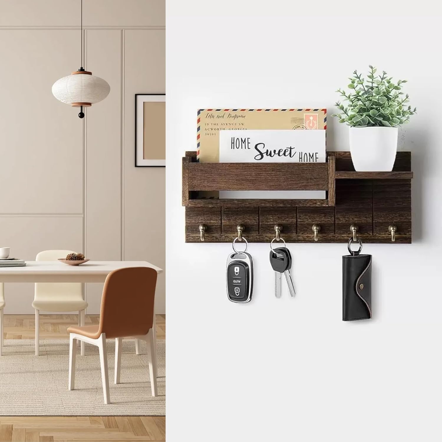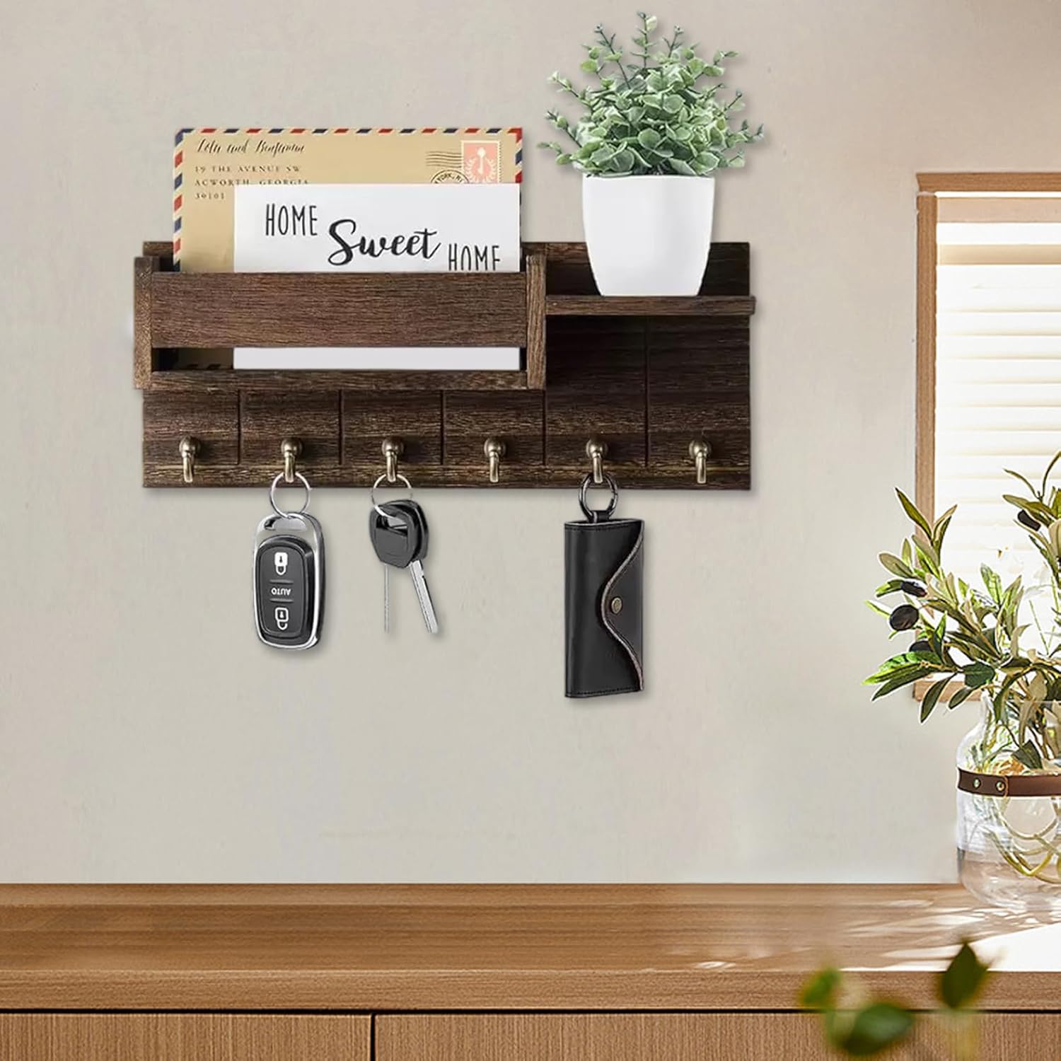 Stable & Sturdy Hooks: Equipped with 6 robust metal hooks, the key and mail holder securely holds keys, lanyards, and small accessories without bending or breaking, ensuring long-term use