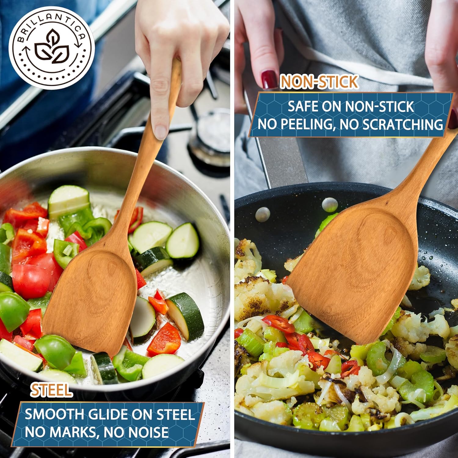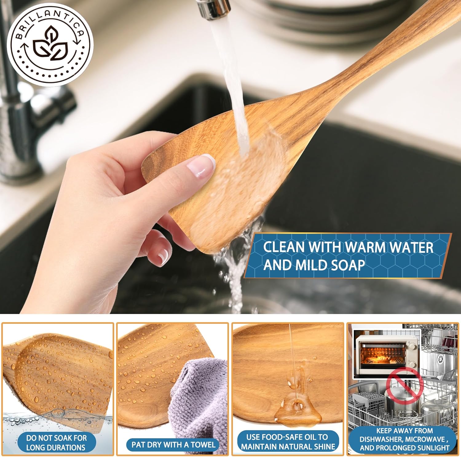 BPA Free: Crafted from natural wood for safe and healthy cooking.Natural Teakwood: Natural materials for an environmentally conscious kitchen.Heat Resistant: Durable wooden construction withstands high temperatures without damage.Not Dishwasher Safe: Hand wash recommended to preserve the natural beauty and integrity of the wood. Experience the Brillantica Difference