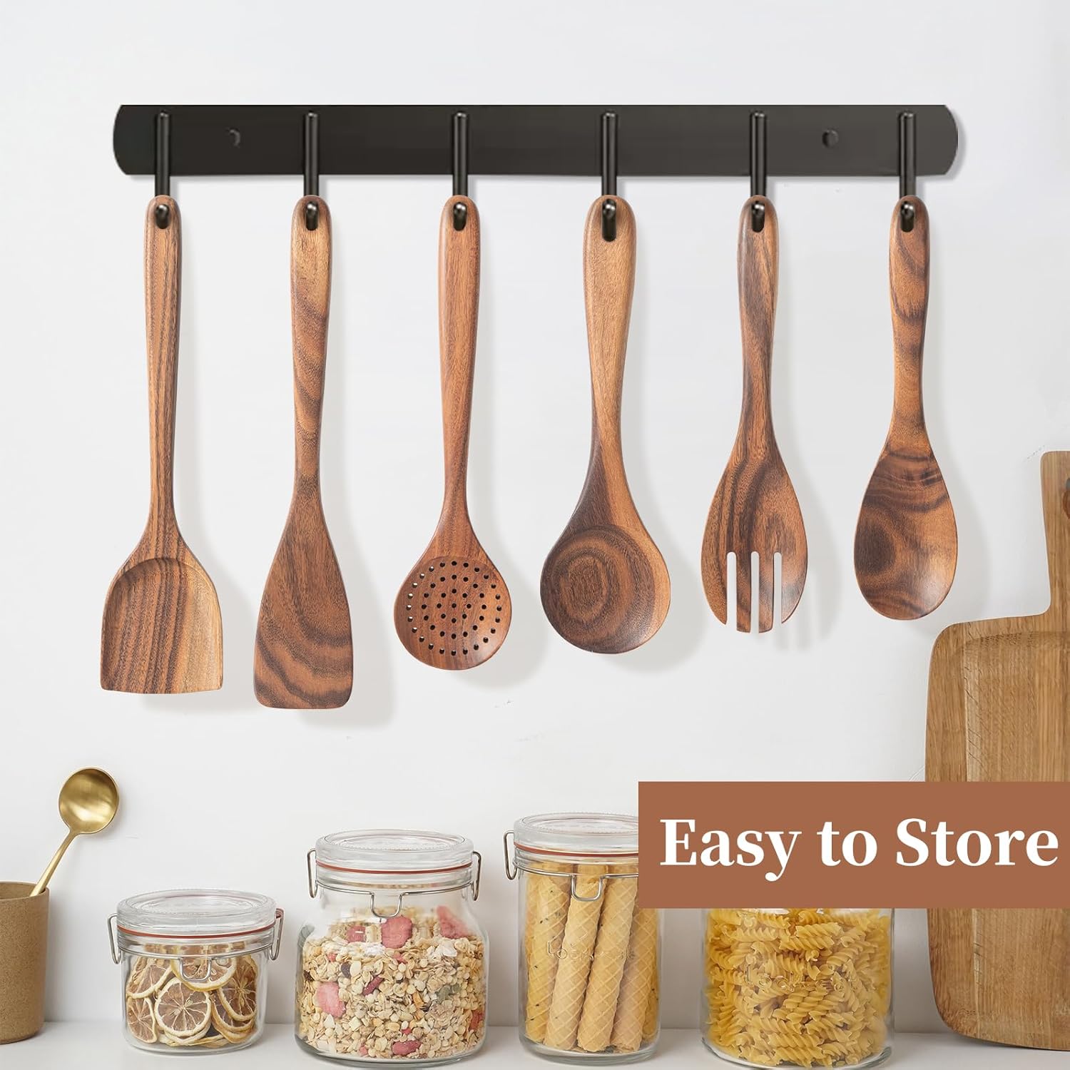 100% Natural Teak Wood: Our wooden cooking spoons utensils set is made from natural teak wood. Compared with plastic or metal spoons, teak spoons will not undergo chemical reactions with food, and they can maintain the original flavor of the food to the greatest extent, allowing you to enjoy the pure deliciousness