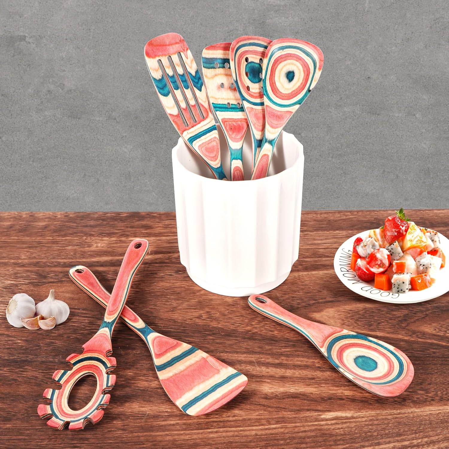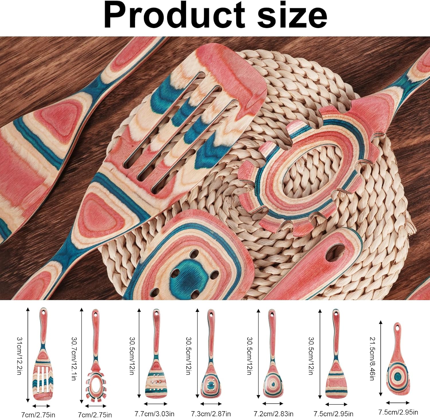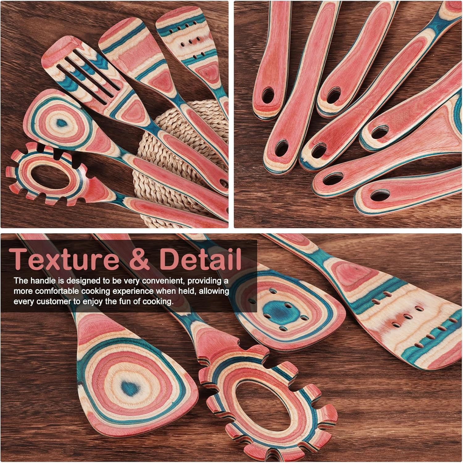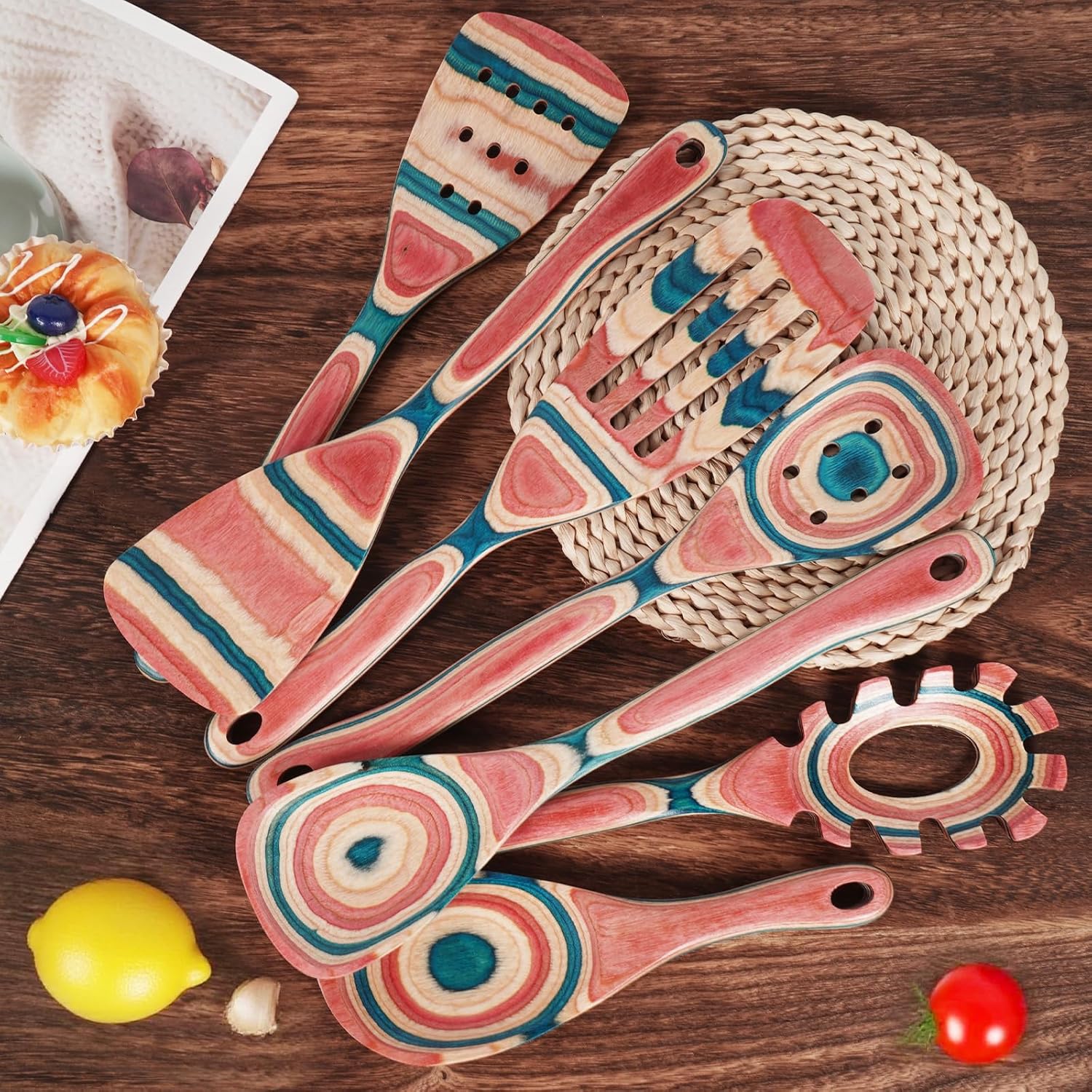 7-Piece Premium Pakkawood Kitchen Utensil Set – Elevate your cooking experience with our luxurious wooden kitchen utensil set, crafted from high-density Pakkawood for durability and elegance. The rich, controlled grain patterns add a touch of sophistication to any kitchen.