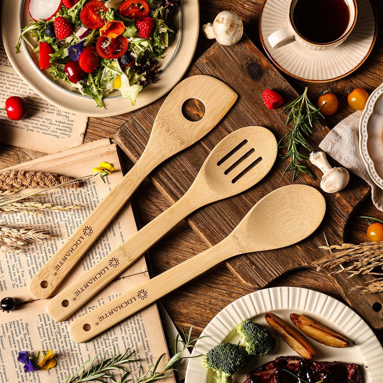 ✔PREMIUM NATURAL BAMBOO – SAFE & ECO-FRIENDLY: Crafted from high-quality natural bamboo, which offer a safe and sustainable alternative to plastic or metal kitchen tools