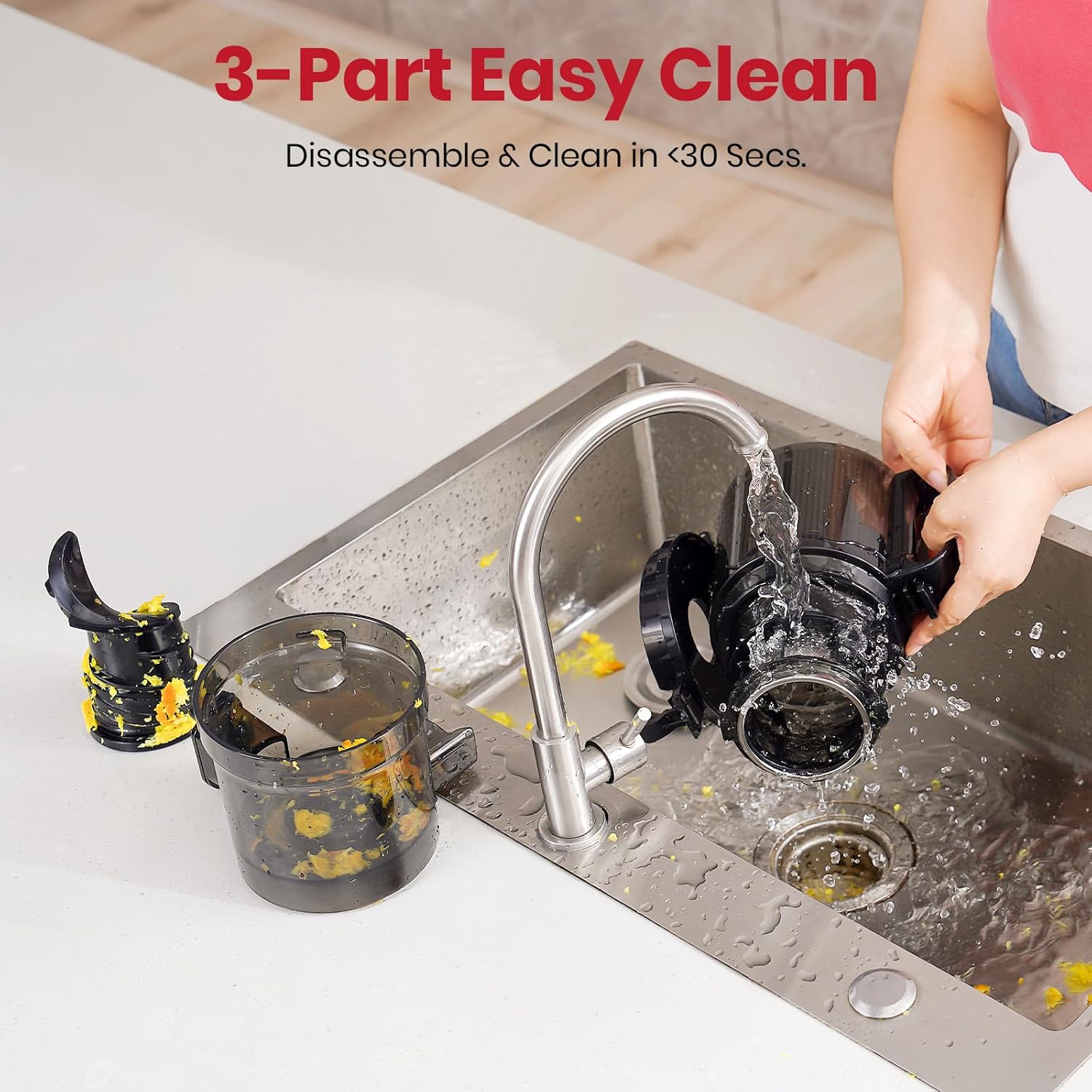 [Powerful Motor – Hassle-Free Juicing] 250W high-torque motor effortlessly crushes hard ingredients like ginger and beetroot in seconds. Encounter a jam? The “R” reverse function clears blockages instantly, keeping your juicing smooth and uninterrupted. Combined with a 3-part easy-clean design, maintenance takes less than a minute, making every juice hassle-free and efficient.